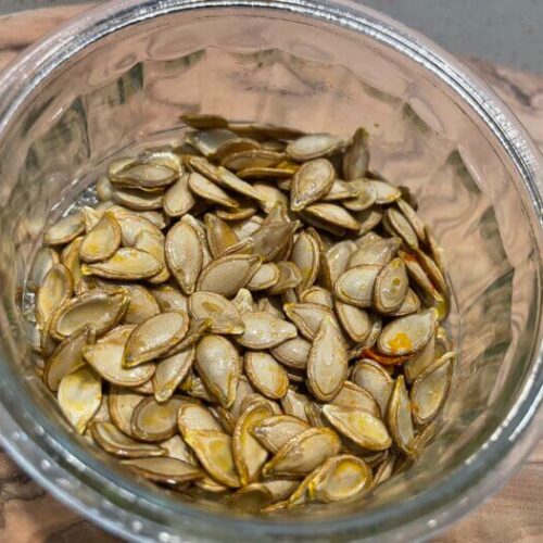 You can roast any winter squash seed to eat. Experiment with flavors. Winter squash seeds are also a great source of protein, fats and nutrients.